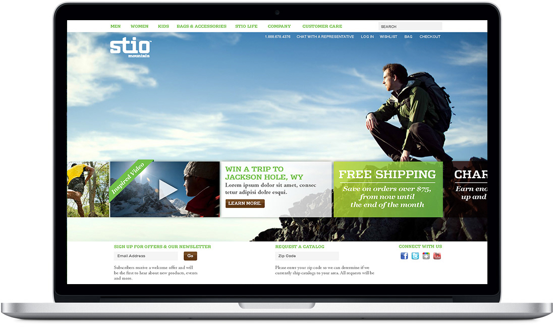 Mountain lifestyle retailer Stio pairs function with beauty in their casual lifestyle clothing. Customers embrace the Jackson Hole Wyoming Lifestyle... wake up, walk or bike to work, meet up with friends for a hike after. I provided website home page explorations and a poster design, which was used in their flagship store in Jackson Hole, Wy.