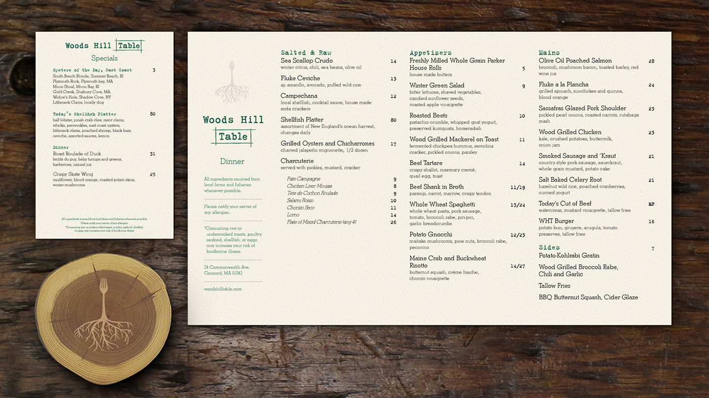 Identity and collateral for a farm to table restaurant in Massachusetts.